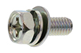 鉄(+)(-)六角アプセット頭セムス小ねじP=3 (バネ座+JIS平座 組込)(全ねじ)(プラマイ)