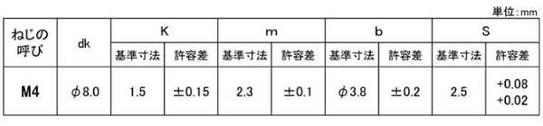 | 径4x30 低頭 2002L1000040030000 |
