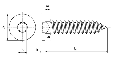 ステンレス 極低頭 平頭タッピンねじ(六角穴付き)(1種A形)