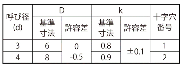 | サイズ | 表面処理 | 入数(単価:税込) ※最小販売条件:1小箱・袋〜 | 在庫