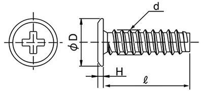 鉄(+)スリムヘッドタッピンねじ(2種溝なし B-0形) (極低頭タイプ)
