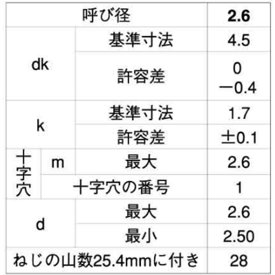 | 径2.6x10 スリワリ頭 210201200026010000 |