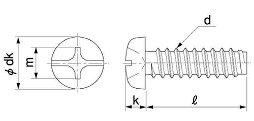 ステンレス(+)(-)ナベ頭 タッピンねじ(2種溝なし B-0形)