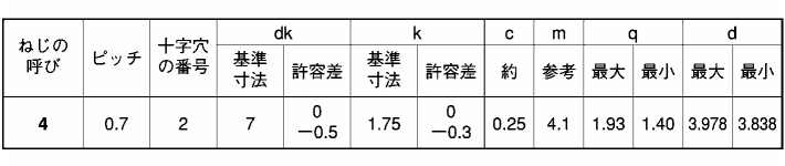 | 径4x10 (頭径=7) 2202010H0040010007 |