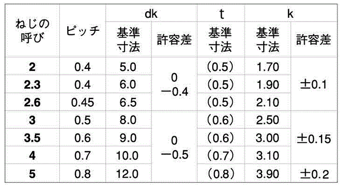 サイズ 表面処理 入数(単価:税込) ※最小販売条件:1小箱・袋〜 在庫