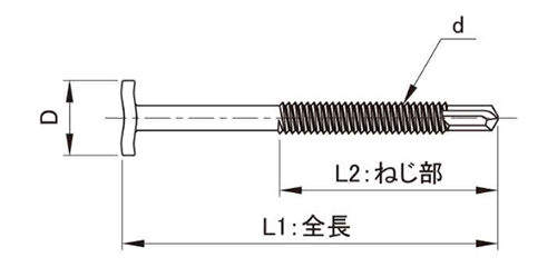 ・下穴不要で、自ら下穴開け、タップ立て、締め付けができる機能を持ったねじです。