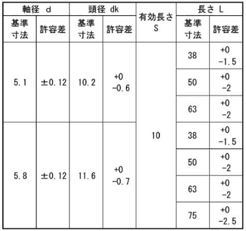 サイズ | 表面処理 | 入数(単価:税込) ※最小販売条件:1小箱・袋〜 | 在庫![]()