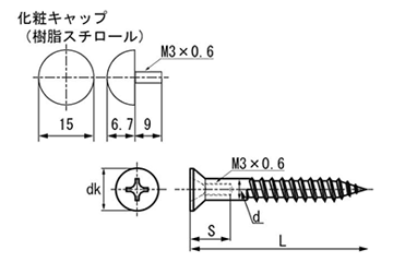 黄銅 化粧キャップ付き木ねじ (芯穴部M3/化粧ビス)