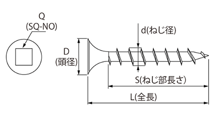 鉄 スクエアーリセス コーススレッド ラッパ(四角穴付)