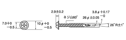 | 径3.8x25 スリワリ頭 6300062W0038025003 |