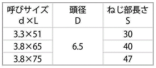 | 径3.8x65 (ねじ部40) 630007PS0038065002 |