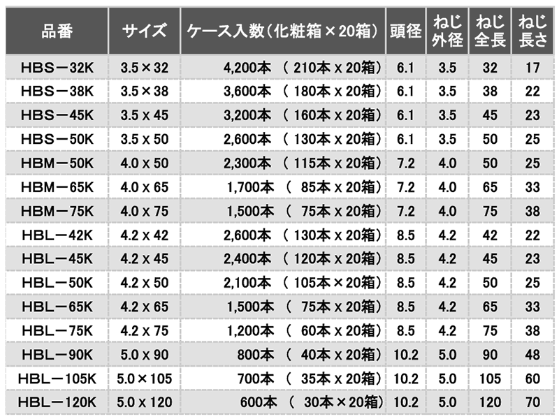 | 径3.5x50 (HBS-50K) 6300B0000035050002 |