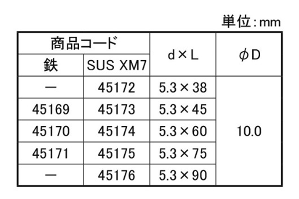サイズ 表面処理 入数(単価:税込) ※最小販売条件:1小箱・袋〜 在庫