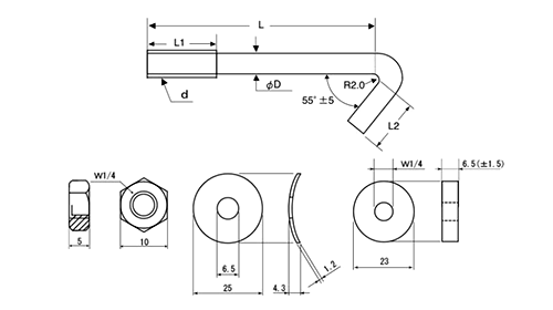 鉄 フックボルトセット (インチネジ 小波・黒 W1/4) の商品一覧