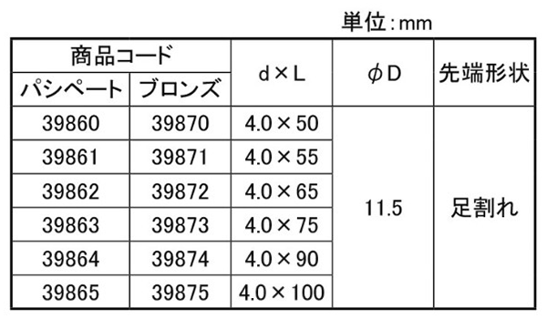 | 径4x50 (100本入) 6302DH440040050000 |