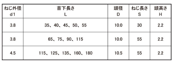 サイズ 表面処理 入数(単価:税込) ※最小販売条件:1小箱・袋〜 在庫