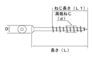 ステンレス SUSXM7 スクエアーウッド(皿頭)デッキビス(四角穴付)