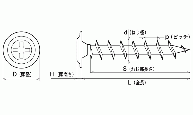 頭径が大きくガッチリしているので、ボード・薄鋼板の押さえ効果もあります。