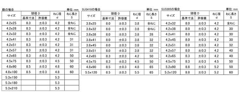 | 径3.8x41 (全ねじ) 6303040T0038041000 |