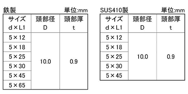 ステンレス SUS410(+) ダンバ(木下地用)TM(薄平頭・全ねじ)(若井産業) の商品一覧