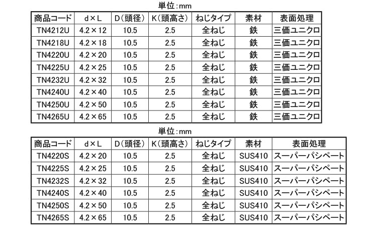 ステンレス SUS410(+) 耐火野地板専用ビス (金属屋根用)(全ねじ) の商品一覧