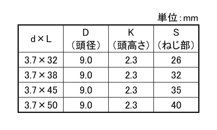 | 径3.7x38 (ねじ部32) 6303Y6S20037038000 |