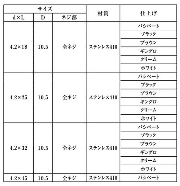 ステンレス SUS410(+) 木用パッキンビス (角波、役物+木下地)(ギングロ) の商品一覧