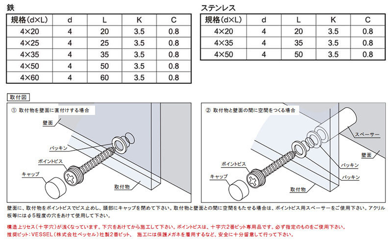 ステンレス ポイントビス フランジ頭タッピンねじ(1種A型)(頭部ねじキャップ用)