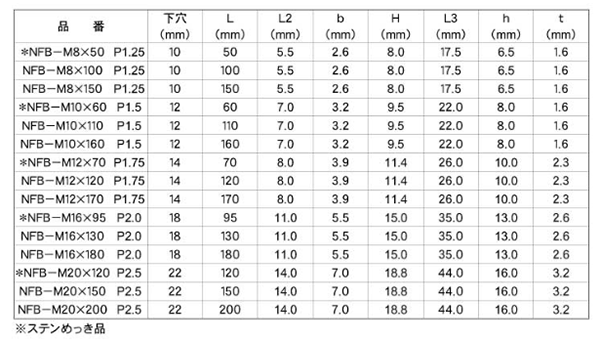 | NFB-M8x50 (p=1.25) ピッチ=1.25 6Q00E0060000070000 |