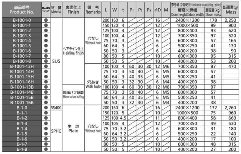 タキゲン B-1001 ステンレス 重量用平型蝶番