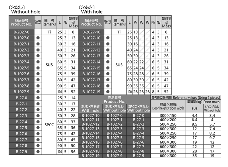 タキゲン B-1027 ステンレス 規格型平蝶番