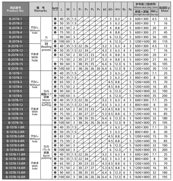 | サイズ | 表面処理 | 入数(単価:税込) ※最小販売条件:1小箱・袋〜 | 在庫