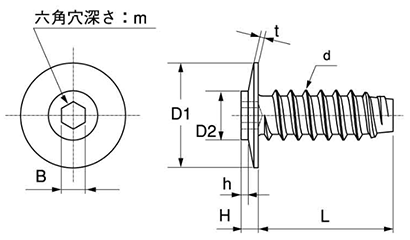 鉄(六角穴付)シンヘッド タッピンねじ(TH-TP-B0タイプ) 超薄頭 ゆるみ止め