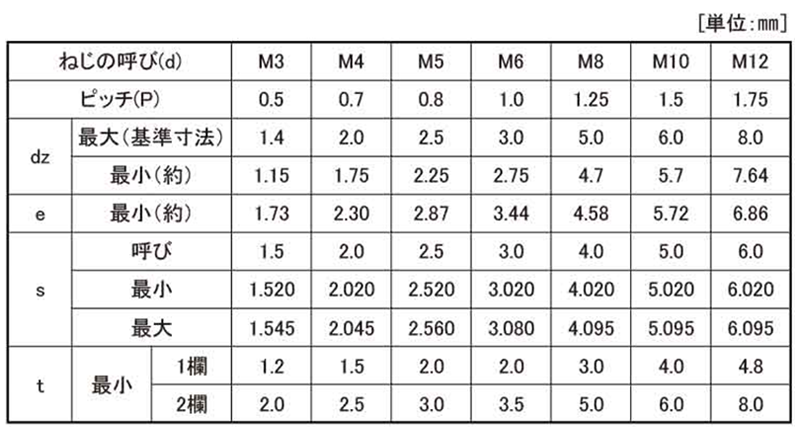 | M3x3 (p=0.5) ピッチ=0.5 A000505T0030003020 |