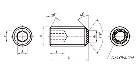 鋼 六角穴付き止めねじ(ホーローセット)(ギザ先)