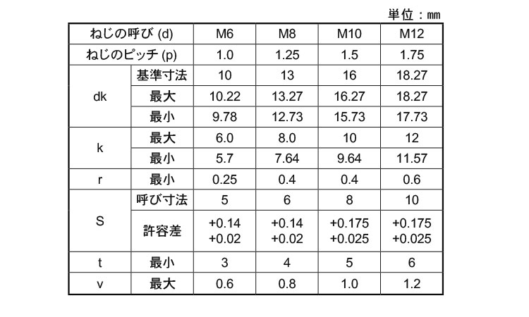 | M6x12 (p=1.0) ピッチ=1.0 A012030B0060012000 |