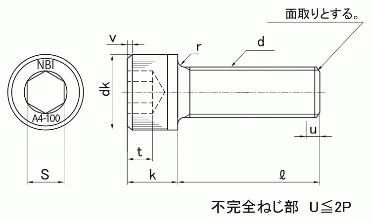 ステンレス SUS316L(A4-100) 高強度 六角穴付きボルト(キャップスクリュー)(全ねじ)(日本鋲螺製)