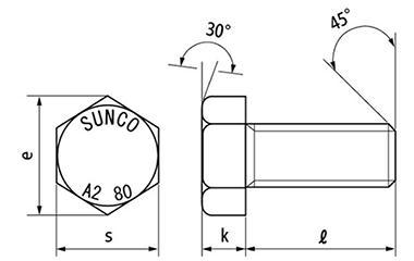 ステンレス 高強度A2-80 六角ボルト(プレミア ステン)(全ねじ)
