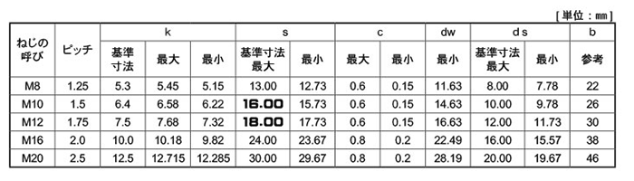 | M8x55 (p=1.25) ピッチ=1.25 B0400J100080055000 |