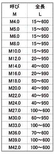 M4 / M5 / M6 / M8 / M10 / M12 / M12(中海品) / M16 / M18 / M20 / M22 / M24 / M30 / M36 / M42