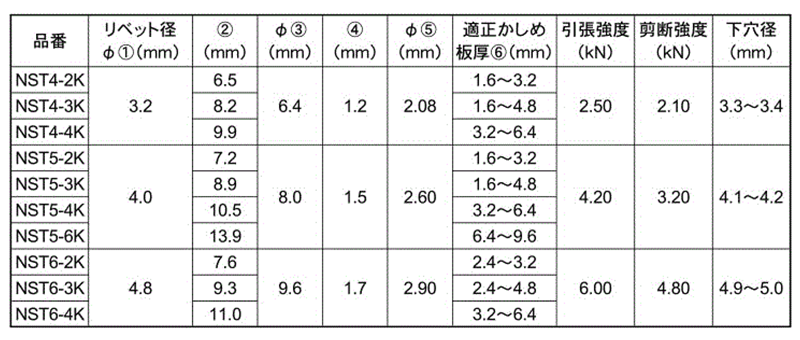 ステン-ステン ブラインドリベット NST-K (皿頭) (ニッセン製) の商品一覧