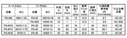 鉄 ピーエーアンカー(PA) (メネジ内部コーン式)(日本ドライブイット) の商品一覧