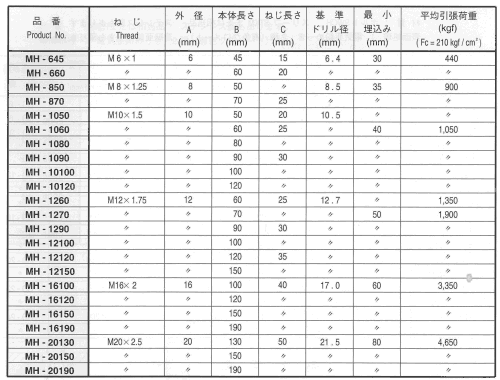 鉄 メタルヒットアンカー (おねじ芯棒打込式)
