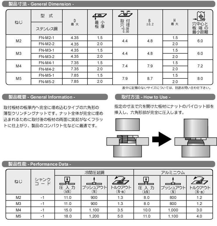 ステンレス ユーロテック クリンチング フラッシュナット (FN)