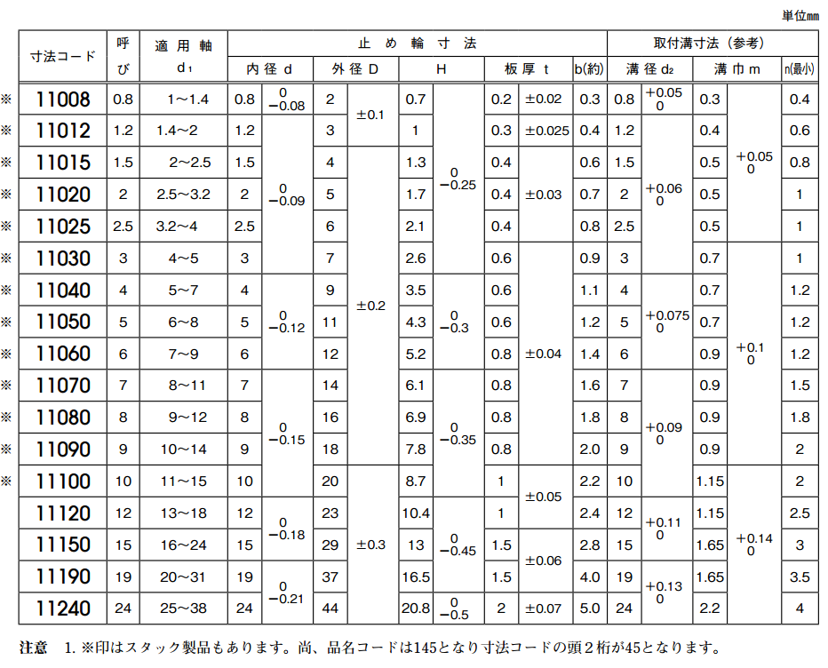 ・軸用のみで、商品の呼びサイズはスナップリングと違い、軸の溝径が商品サイズ名です。