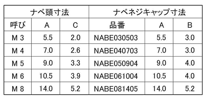 サイズ | 表面処理 | 入数(単価:税込) ※最小販売条件:1小箱・袋〜 | 在庫![]()