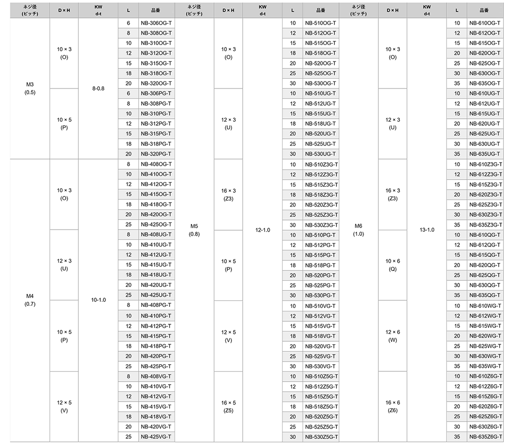 | NB-510Z5G-T (M5 p=0.8) ピッチ=0.8 低頭 L00061250510000000 |