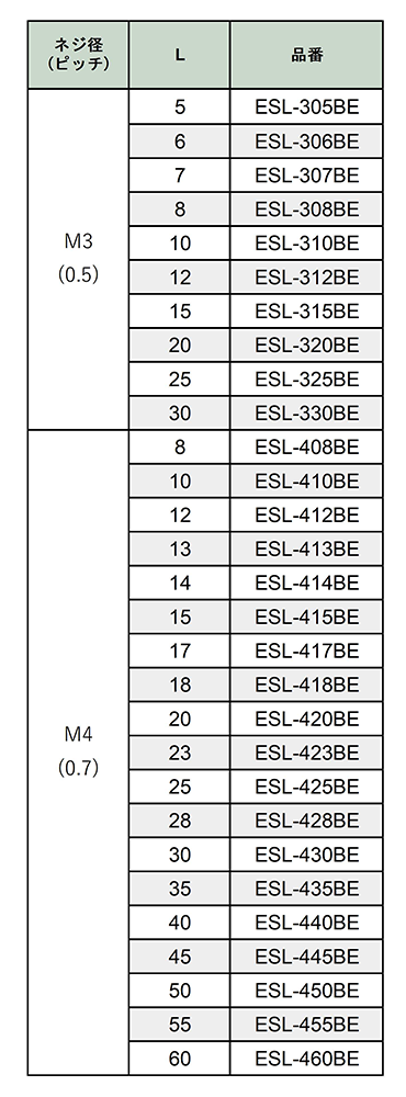 アルミ(鉛レス) 六角スペーサー(両オスねじ) 黒アルマイト処理 / ESL-BE (RoHS2対応) の商品一覧