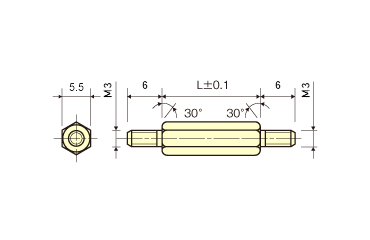 アルミ(鉛レス) 六角スペーサー(両オスねじ) 黒アルマイト処理 / ESL-BE (RoHS2対応)