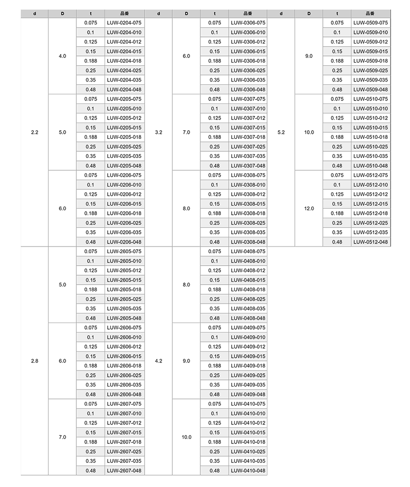 | LUW-0205-012 (径2.2) L000LUW00205012000 |